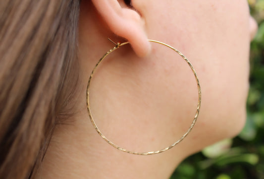 Gold Hoop Earrings, Dainty Hammered Hoops