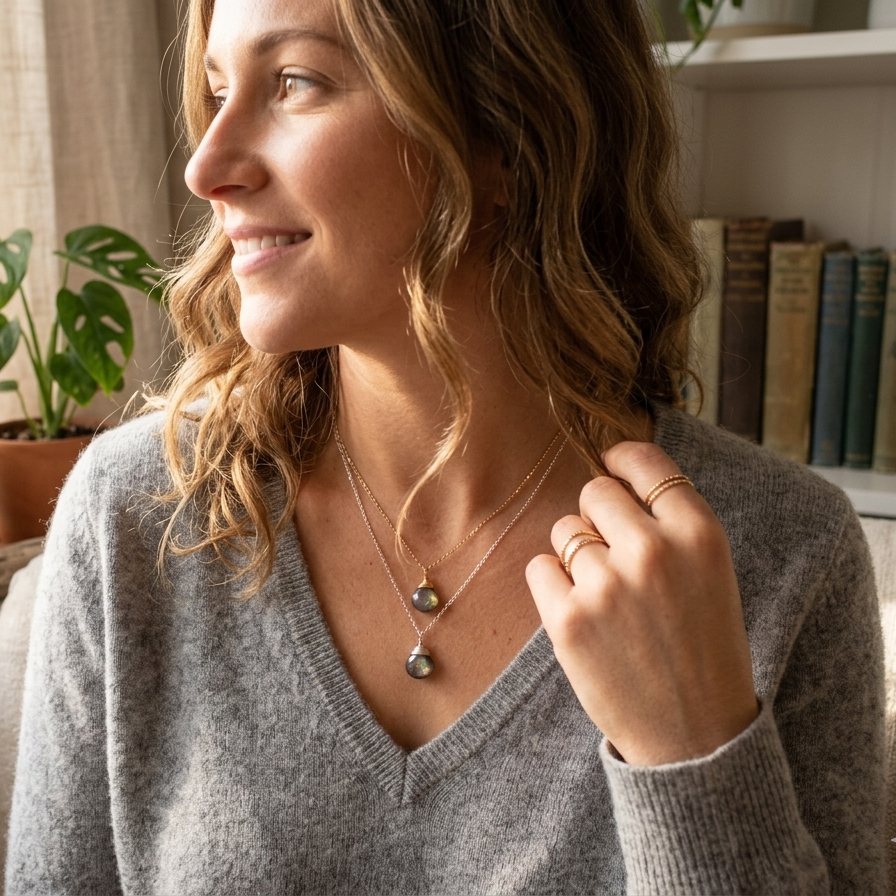 Crafted with 14k gold filled and sterling silver, our jewelry is designed to stay beautiful through showers, beach days, and everyday adventures.