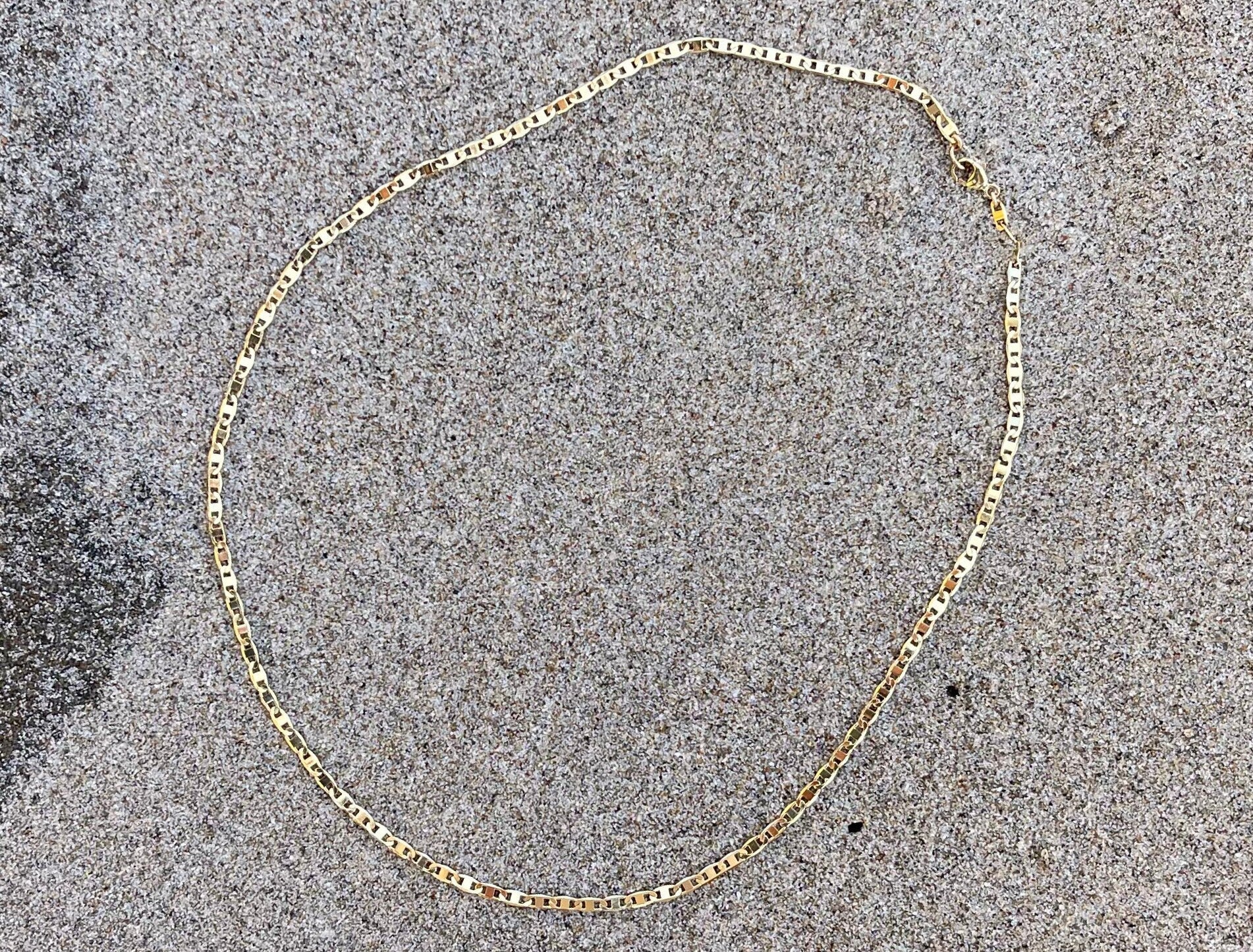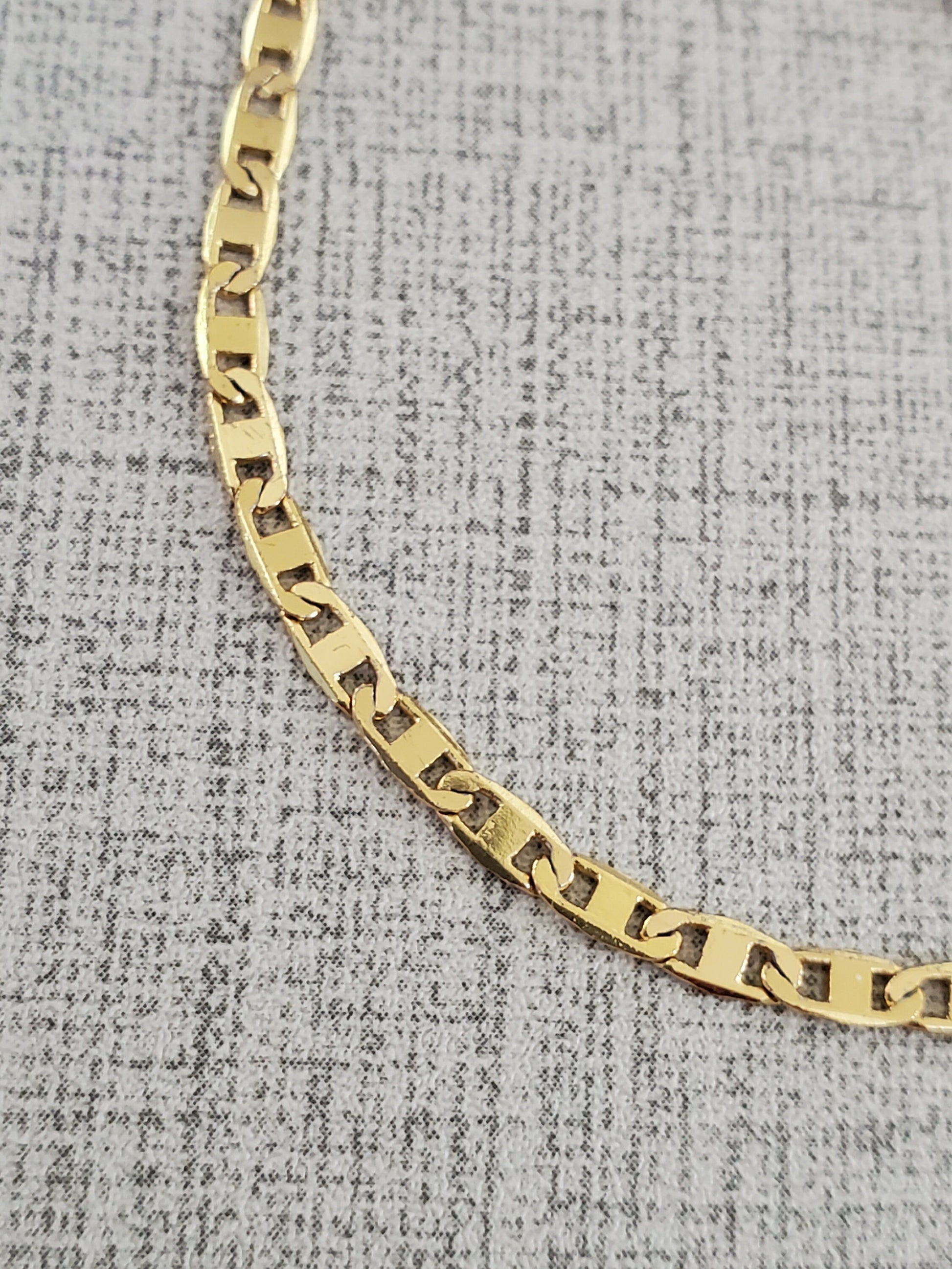 A twist on a classic, the Anchor chain is both dainty and bold. In 14k gold filled and 2mm wide, you can wear it alone as a simple everyday necklace or layer it with one of your favorite pieces. All items are handmade with high quality gold fill materials, so they won't tarnish or discolor. You can wear them in the shower, to the beach, gym etc. The necklace shown in 17" length.