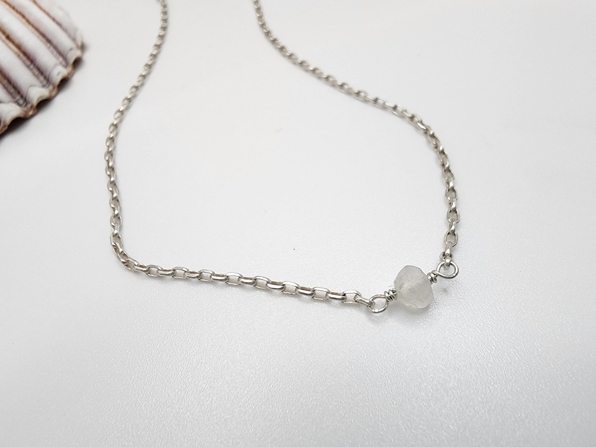 Beautifully simple moonstone anklet. This pretty anklet is made from either 14k gold filled or sterling silver box chain, so it won't tarnish or discolor, even when worn to the beach or swimming in a pool. It has a beautiful iridescent moonstone set in the center which adds just a hint of shimmer to this otherwise simple classic. The dainty but strong chain has so much sparkle with flatcut links that catch the light just perfectly. Made to last, it will hold up even when at the gym or wear...